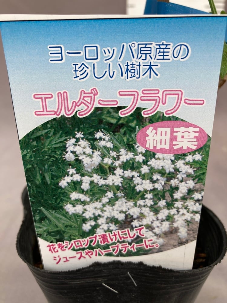 エルダーフラワーは、落葉低木で大きな茂みになります。甘い香りでクリーム色の小さい花を房状に咲かせます。お花の後には黒味がかった紫色の液果をつけます。果樹といっしょに植えると、鳥害を防ぐといわれています。花は乾燥させてフリッターやジャムに、実はワインやジャムに加工します。ハーブティーで楽しむとマスカットのような甘い香りの優しい味わいです。