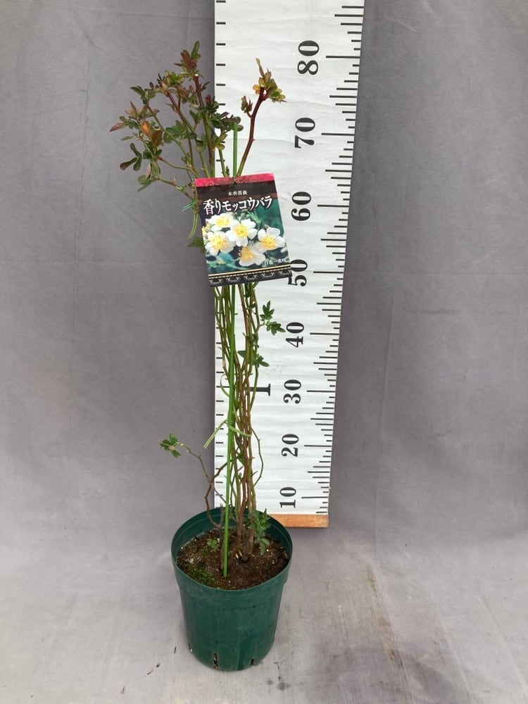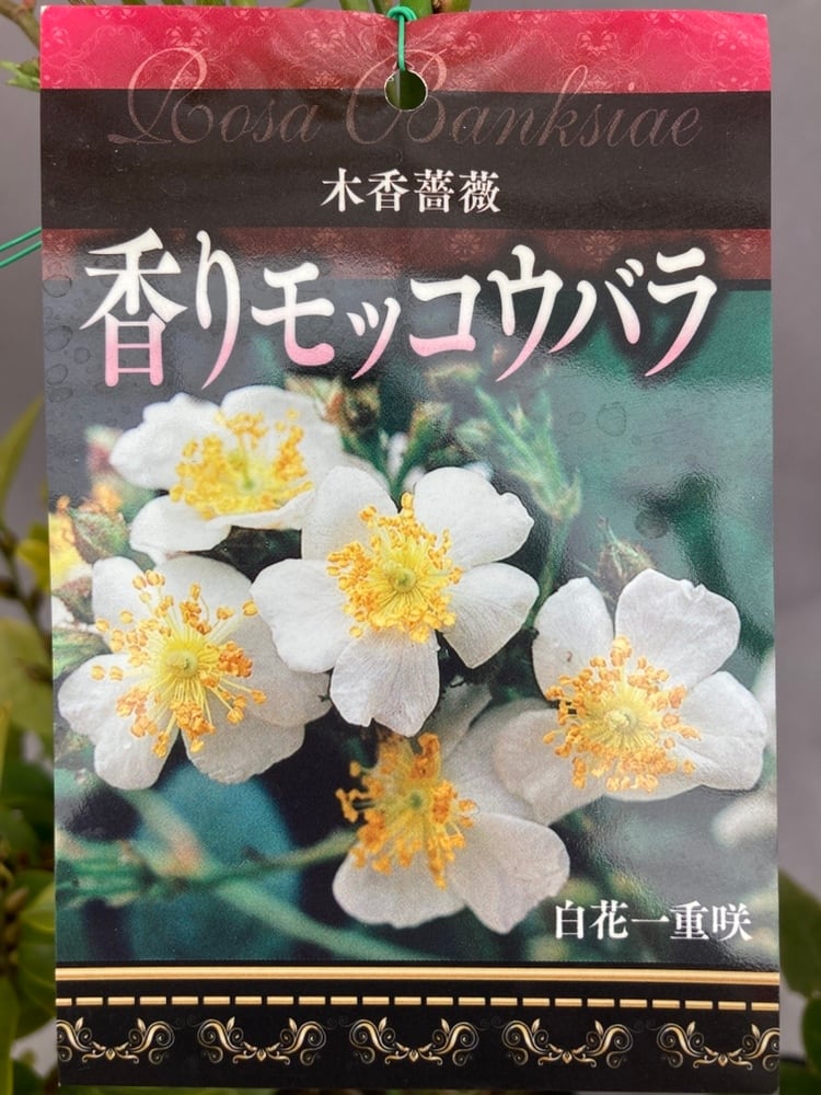 香りモッコウバラは一重の白花でモッコウバラの中では最も香りが強いタイプです。古い枝には小さなとげがありますが、病気にはほとんどかからず害虫被害も少ない育てやすい原種に近いモッコウバラです。一季咲ですが枝いっぱいに咲く白花は可憐で清楚。香りも良いので初夏のお庭をぐっと魅力的な空間にしてくれますよ。