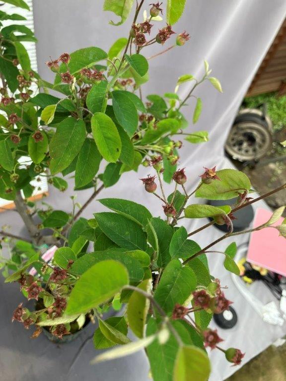 ジューンベリー(アメリカザイフリボク)は花、実、紅葉が美しい落葉高木です。日本のザイフリボクよりも観賞価値が高く、開花時は樹冠が白い花で覆われるようになります。実は6月頃に収穫するので欧米ではジューンベリーと呼ばれています。ベリーとは名がつきますが、木いちごの仲間ではなく、リンゴを小さくしたような実です。紫紅色に熟した実は甘く、生食のほかジャムなどにも加工して味わえます。欧米ではお庭に最適の木とされています。