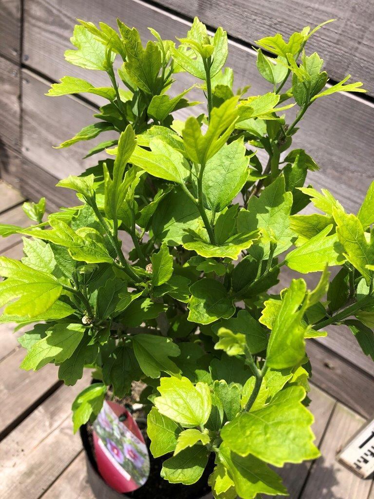 わい性のハイブリットムクゲ。直立性で分枝が良く樹高40~60cm程度のコンパクトサイズ。花は大輪で長期開花します。果実をつけないため低メンテナンス。耐暑性、耐湿性、耐乾燥性、耐寒性が強く、育てやすい品種です。
