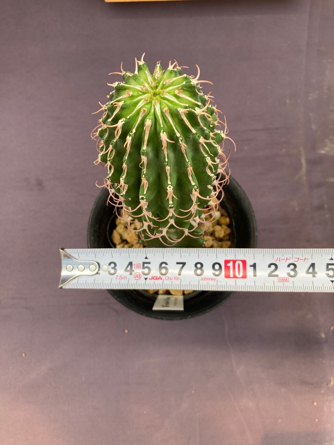 ユーフォルビアの希少種コルムナリスです。左右にカールしている棘が何とも言えない感じですごく魅力的です。サボテンのような姿をしており、とても大きくなるので育てがいがあります。日光の当たる明るい場所で管理してください。ただし真夏の日差しだけは避けましょう。
