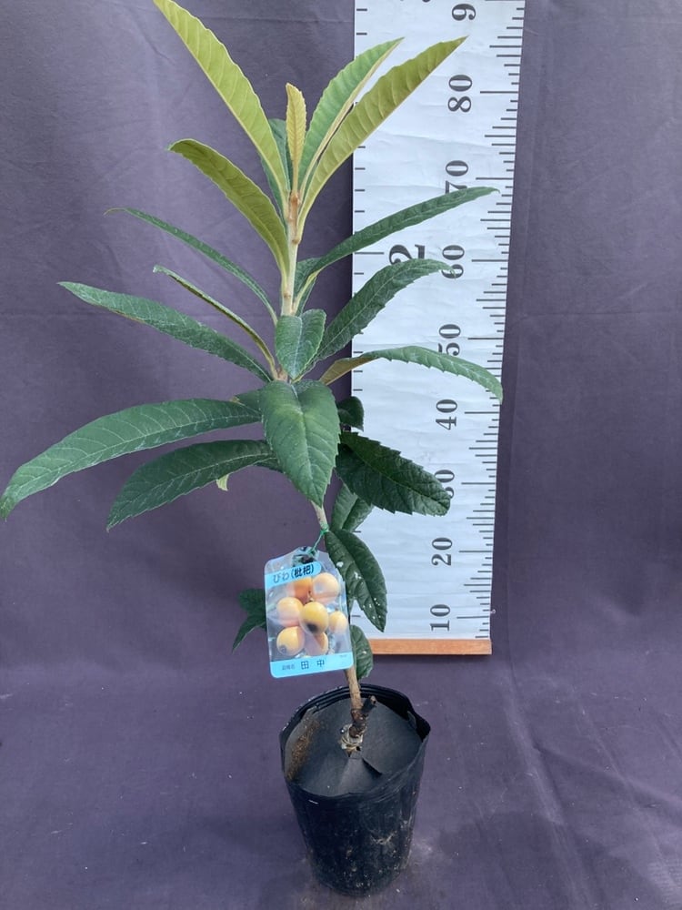 ビワは5~6月に初夏の味覚を満喫させてくれるみずみずしい果実です。田中は東日本を中心に古くから栽培されている品種で、西日本に多い茂木(モギ)とともに、びわの代表的な品種です。果実が大きく、寒さに強い品種です。家庭でもよく栽培されます。完全に柔らかく熟した状態で収穫すると果汁が多くおいしい品種です。寒い場所、水はけの悪い場所ではうまく育ちませんので、なるべく温かく、排水よくして栽培してください。自家結実性です。鉢植えでも栽培できます。
