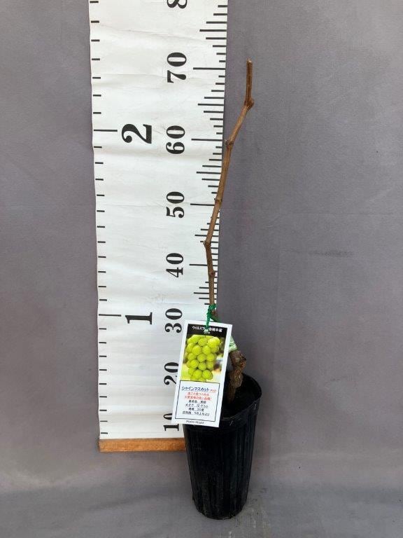 シャインマスカットは、日持ちが良く、マスカット香のある大粒品種。ウィルスフリーの接木苗です。果皮は黄緑色で糖度は約17~20度と高く、皮ごと食べられ、食味は良好です。病害虫に強く貯蔵性に優れ、裂果もほとんどないため、外観のよい高級感があり、将来性が期待される品種です。ストレプトマイシン+ジベレリンで無核生産可能です。