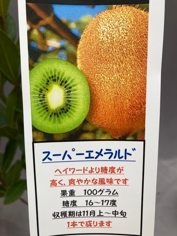 キウイフルーツは家庭栽培でも果実の収穫が容易で大変人気のある家庭果樹です。スーパーエメラルドは、両性種のため1本でも実がなります。雄木を植える必要がありませんので省スペースで育てることができます。果肉の色は、濃いエメラルドグリーンでとても美しく、ヘイワードよりも甘く、糖度は18度以上です!