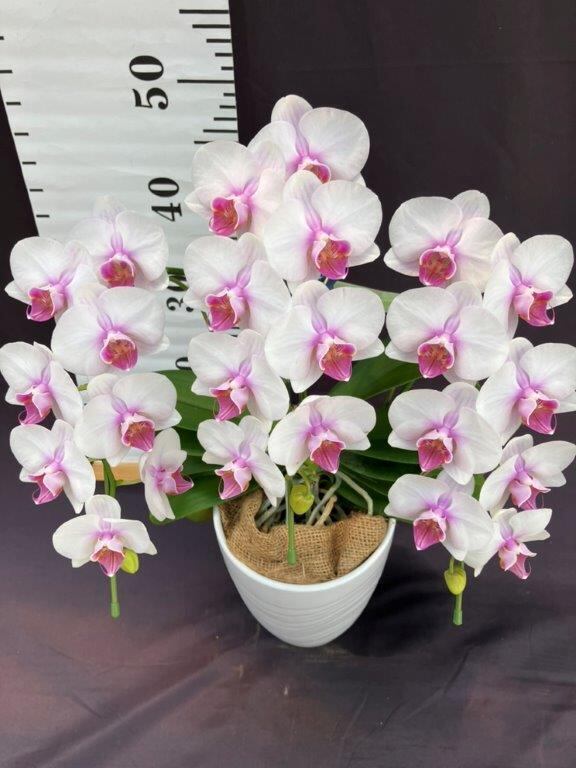 淡いピンクの胡蝶蘭です。中輪で25輪以上はあります。お祝いなどにオススメです。