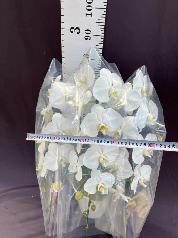 純白の胡蝶蘭3本立ちです。大輪で30輪以上はあります。お祝いやお供えなどにオススメです。