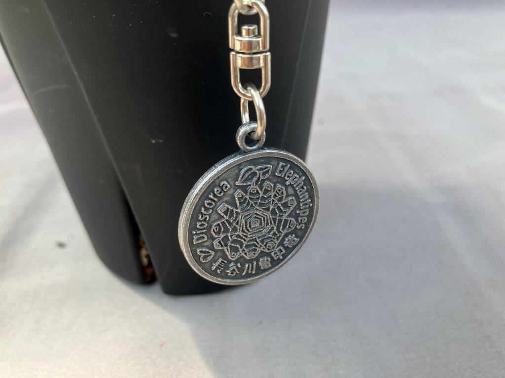 今回の販売分からプランツタグの代りにノベルティとして「長谷川亀甲竜キーホルダー」が付きます。最近人気のコーデックス・塊根(かいこん)植物としてファンを持つこの植物。名前のごとく、何十年と時を経て亀の甲羅のようなイモに育ってゆく珍しい植物です。