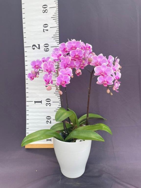 ピンクの胡蝶蘭(ビューティーシーナ・キャンディー)小輪の三本立ちです。お祝いなどにオススメです。