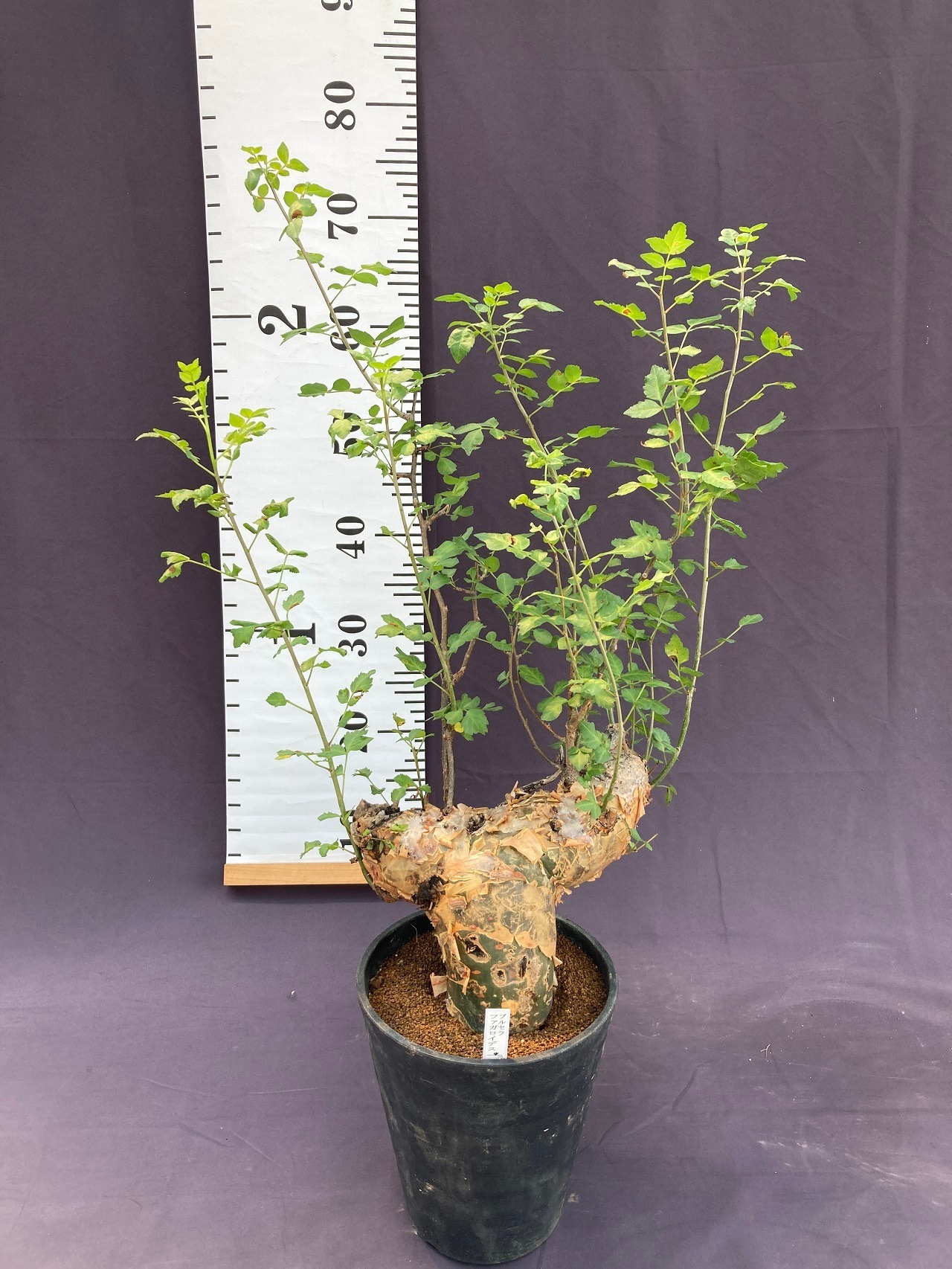 ブルセラ・ファガロイデスは、乾燥した砂漠地帯が原産。幹の部分が成長すると樹皮が剥がれるような感じが魅力的なコーデックスです。
