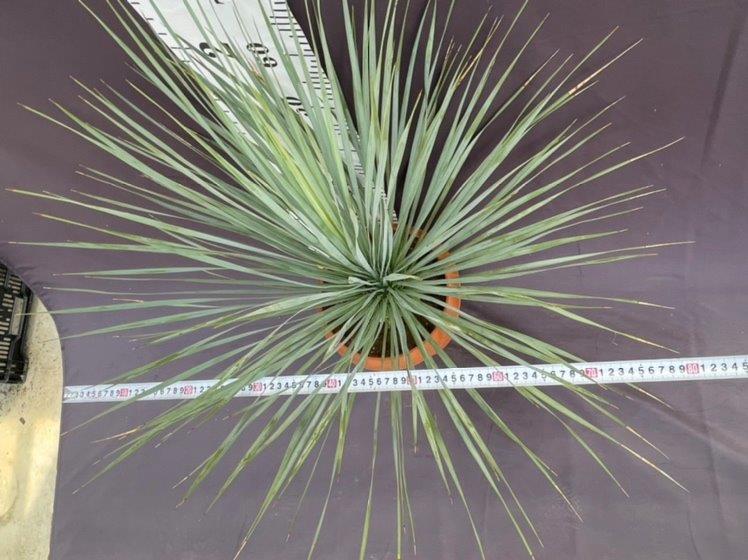 スタイリッシュな雑誌などでよく目にする観葉植物。ユッカ・ロストラータはテキサス州南部〜メキシコ北部にかけての砂漠地帯などに分布するユッカの中型種です。成長すると最大高さ4m程になります。耐乾燥性、耐寒性にすぐれ、鉢植えで育てるほか、冬も比較的暖かな関東以南の太平洋側などの一般平暖地ならや庭植えでも栽培できます。単幹で成長は遅く、1年で数センチしか伸びません。幹の上部にシャープな線形のシルバーブルーの葉を茂らせ、葉の先端は尖っています。