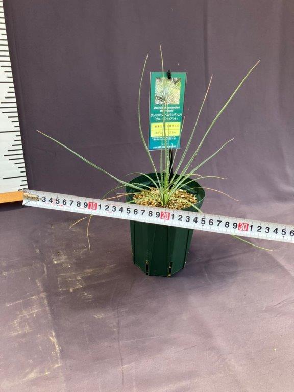 ダシリリオン・ベルランディエリ【ブルージャイアント】は、青い葉が美しく、きれいなロゼットを形成する。メキシカングラスツリーと呼ばれ、乾燥に強くドライガーデンに向く。最大樹高は、2メートルだが成長はゆっくり。寒さ暑さに強く耐寒性は約-12℃。(小さな苗のうちは防寒必要)水やりや追肥の手間がほぼなく、病気や虫がつきにくいため、お庭を長く彩るドライガーデンにはピッタリです。