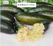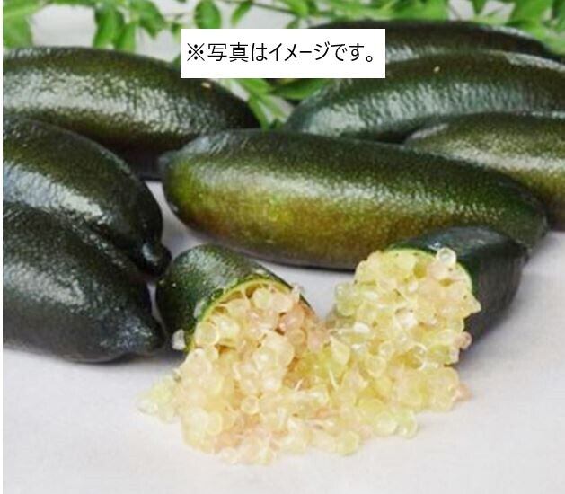 フィンガーライムはキャビアのように美しいプチプチ食感が新鮮な大変珍しい柑橘の仲間。オーストラリアの限定された地域に自生し、ブッシュフードと呼ばれて現地でジャムなどに使われていた果実ですが、その美しい彩りと食感で、カクテルに入れたりデザートのアクセントに利用したりとグルメ通の間で人気に火が付き、入手困難な高級食材となっています。エキゾチックな香りとはじける酸味はまさに「柑橘のキャビア」です。枝には鋭いトゲがあります。