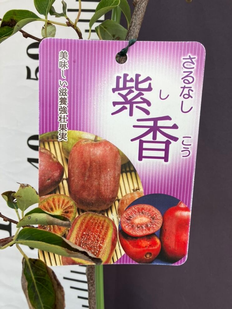 さるなし紫香はマンゴーのようなまろやかな甘さ。アントシアニンが多く含まれており、香りが高く皮ごと食べられます。サルナシはキウイフルーツと同じマタタビ科の日本原産の果樹です。果実は小指の先くらいの大きさですが、熟すと果肉が甘くなり、キウイと同じ風味で甘酸っぱいフルーツです。※自家結実性があり1本でも結実しますが、環境によっては結実しにくい場合もあり、その場合は他品種(エメロードなど)と一緒に育てると結実しやすくなります。
