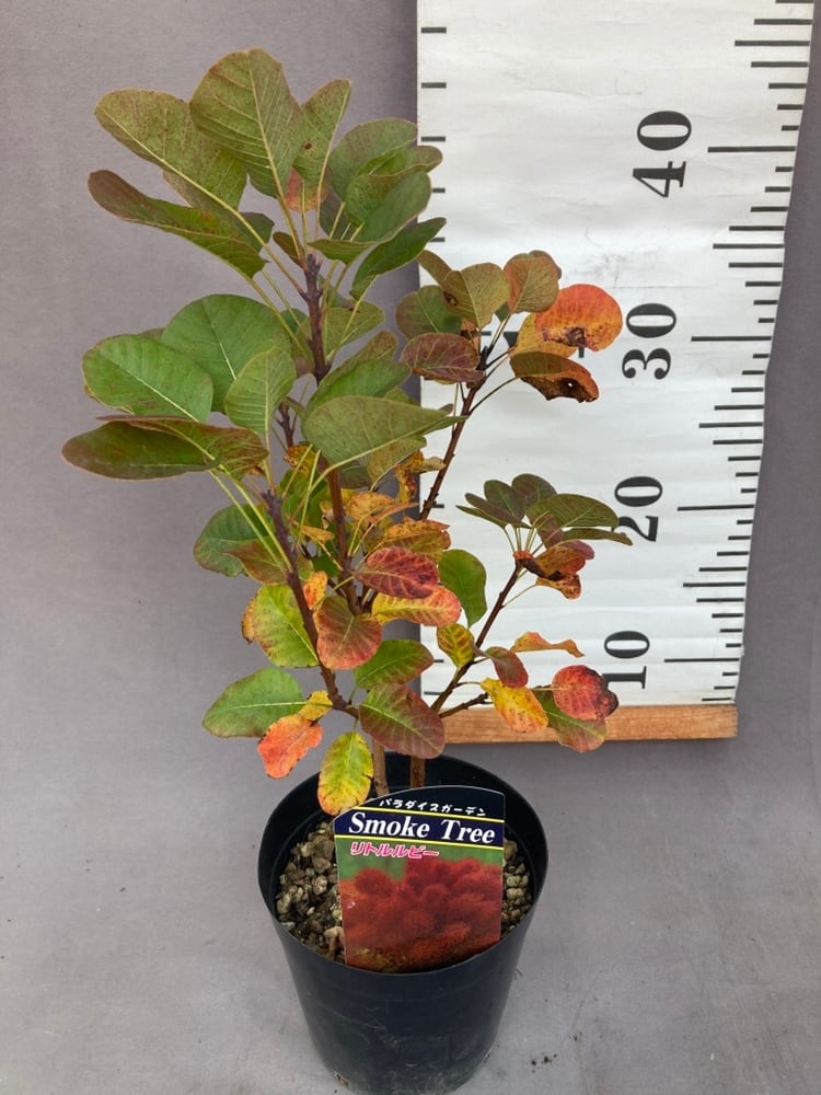 ドライフラワーや切り花で人気のスモークツリーの赤花種。初夏になると、綿菓子のような毛に覆われ、その名の通り「煙の木」となります。日本で改良された矮性種で、花つきと花もちがよく、コンパクト樹形で管理しやすい。秋には紅葉もきれいで一年中楽しめます。