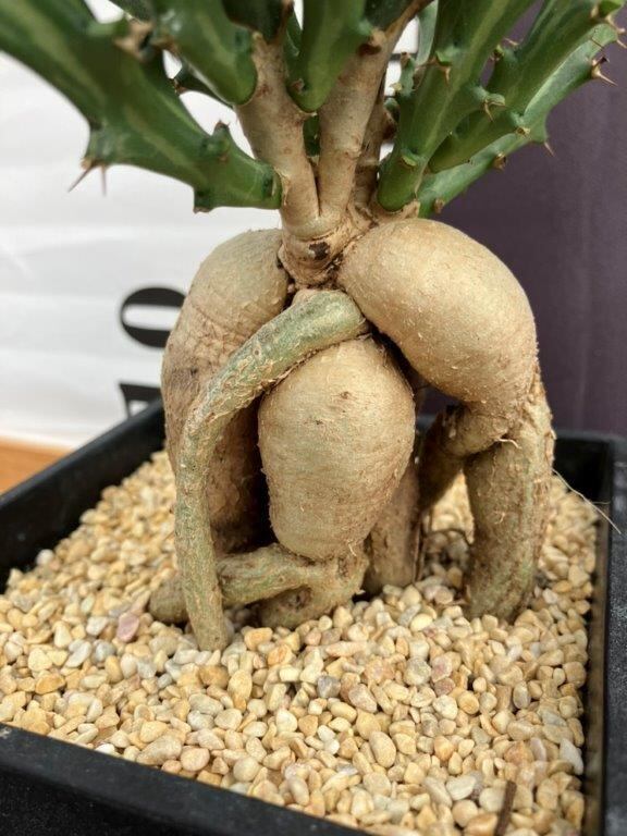 ユーフォルビア・クンチーは、トゲトゲのある太い茎をのばし根は塊根状に大きくなるコーデックス(塊根植物)です。別名、狗奴子キリンとも呼ばれます。