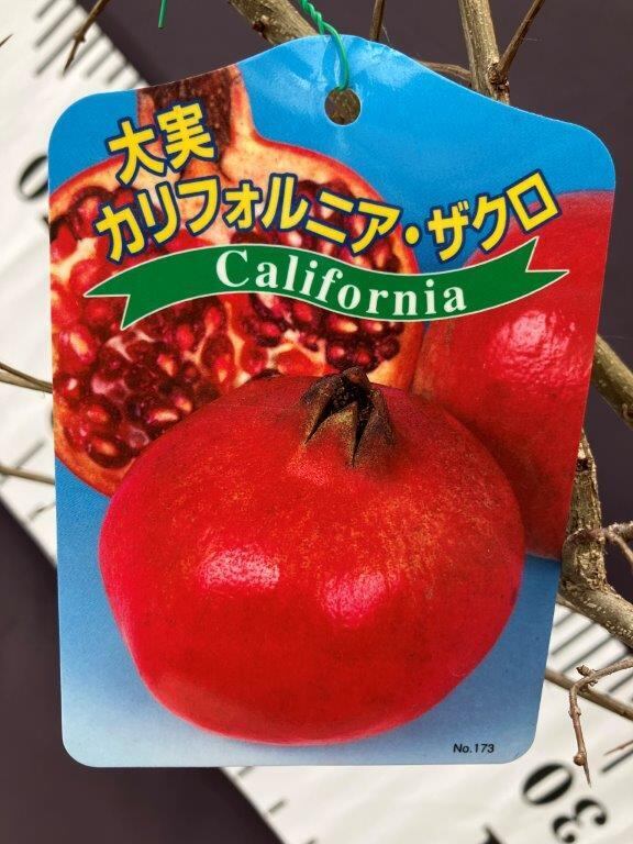 カルフォルニアザクロは、大きさは200g〜300gで日本ザクロより2倍以上大きく、光沢がある。生食のほか果実酒にもできます。収穫時期は9月下旬〜10月中旬。1本でなります。病害虫にも強く作りやすい品種で豊産性です。カクテルなどに使われる赤いシロップのグレナデンシロップと言えばこのザクロです。