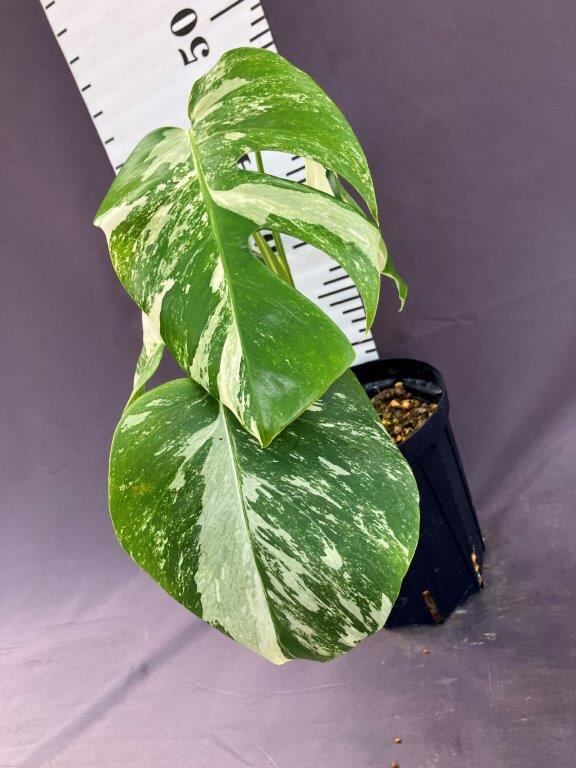 現品販売です。希少種な斑入りのモンステラです。斑の感じがとてもさわやかな印象。おしゃれなインテリア観葉としておすすめです!モンステラは、ハート型のつやのある濃緑の葉が美しく、丈夫な観葉植物です。半つる性になりますので、ヘゴ柱仕立てにすることもできます。成長すると葉に羽状の切れ込みが入ります。
