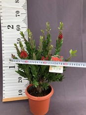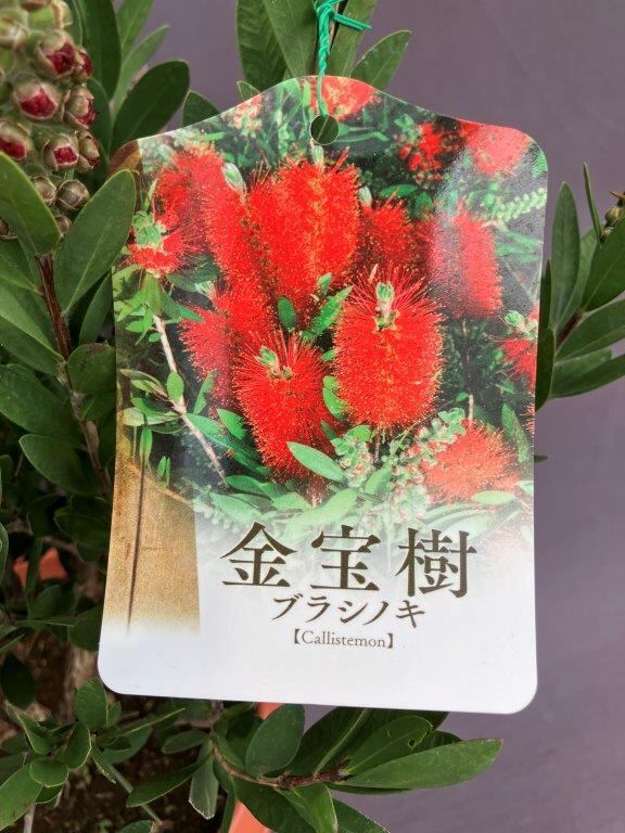 カリステモンはオーストラリア原産の常緑中木。「ブラシの木」や「金宝樹(キンポウジュ)」とも呼ばれます。春〜初夏にボトルブラシ状の円柱形の花穂をつけます。大きく色鮮やかな花穂はとても目立ちます。和洋問わずお庭のシンボルツリーとして使えます。やや寒さに弱いので、庭植えは関東以西の太平洋側で。寒い地域では鉢植えにして、冬季は室内にとりこんでください。鉢植えや庭植えでお楽しみください。