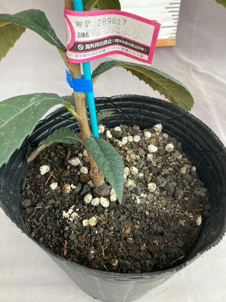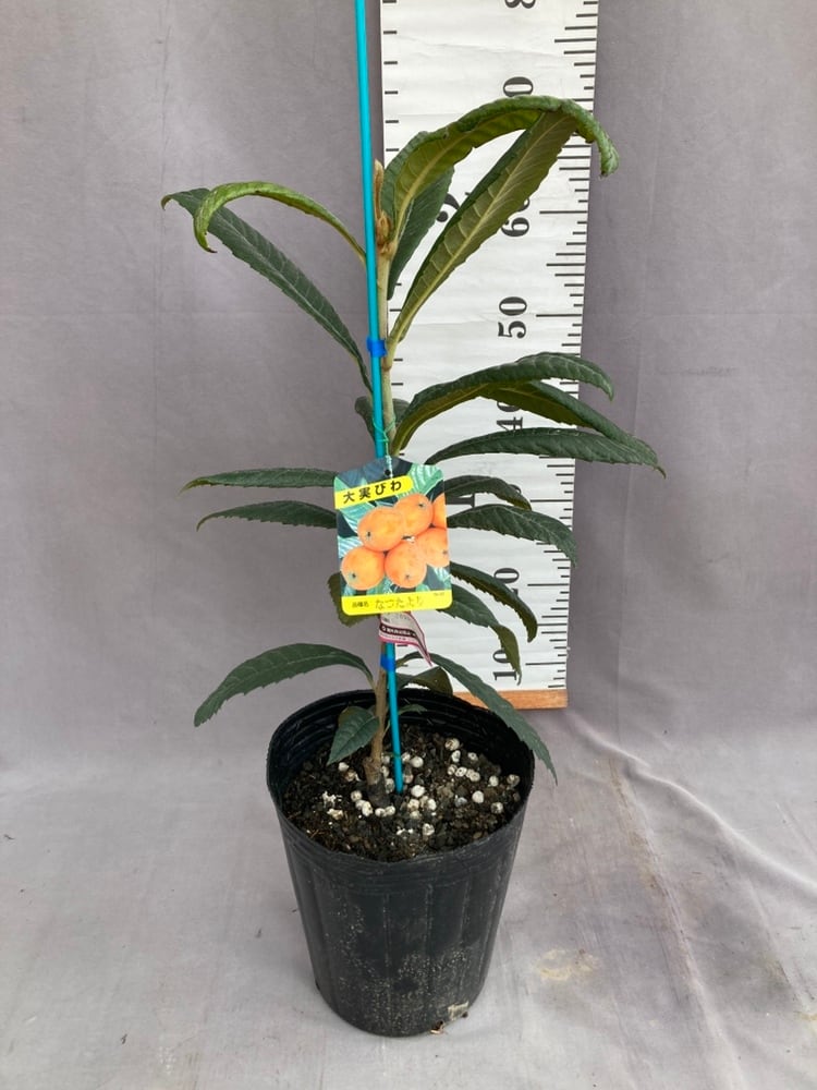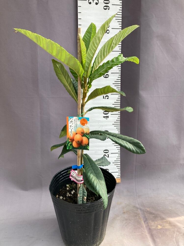 ビワ・なつたよりは、長崎県の農林技術開発センターで長崎早生と福原早生を交雑して育成された新品種で、大実・高糖度・収穫が早い・極豊産・強健と五拍子そろった優良品種です。果重は平均60g〜最大65gほど、糖度は最大15.9度ほどと大実で甘く、若木の頃から実がつき、ビワの中では最も早く5月の中旬〜下旬頃から収穫できます。また、豊産性で樹勢も強く、ビワの主要病害であるがんしゅ病に比較的強いとされています。