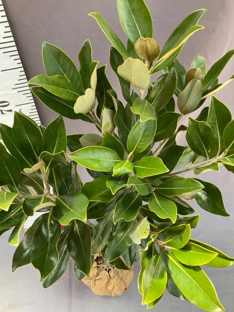 現品419D商品です。タイサンボク・リトルジェムは一才性品種で鉢植えでも、苗木の時から花を咲かせます。白い花にはよい香りがあり、四季咲き性で、初夏から晩秋まで次々と咲き続けます。葉は小型で、光沢のある緑色で樹姿も美しく整います。花壇、鉢植ともに最高です。初心者向きで育てやすい品種です。